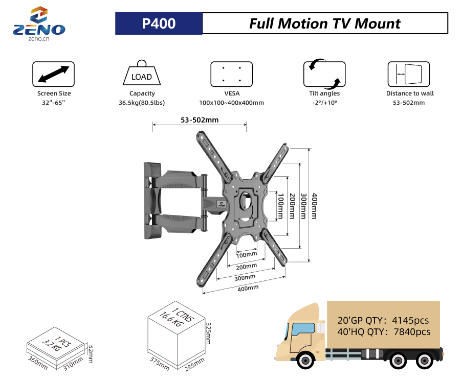 ◈ VESA: 100x100~400x400mm: ◈ Load Capacity: 36.5kg/80.5lbs